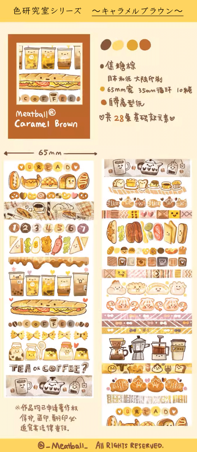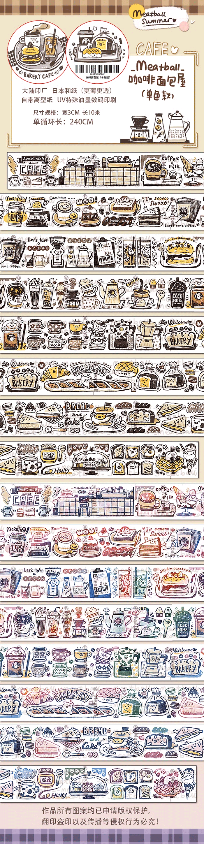 ↓5.珈琲面包屋・単色Ver.(幅30mm*10M・240cm毎に柄が繰り返し・剥離紙タイプ)