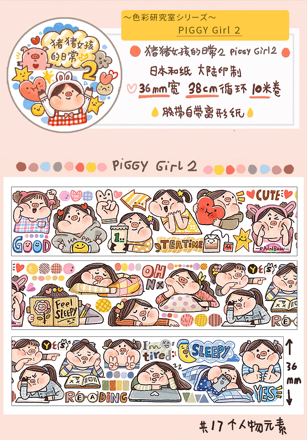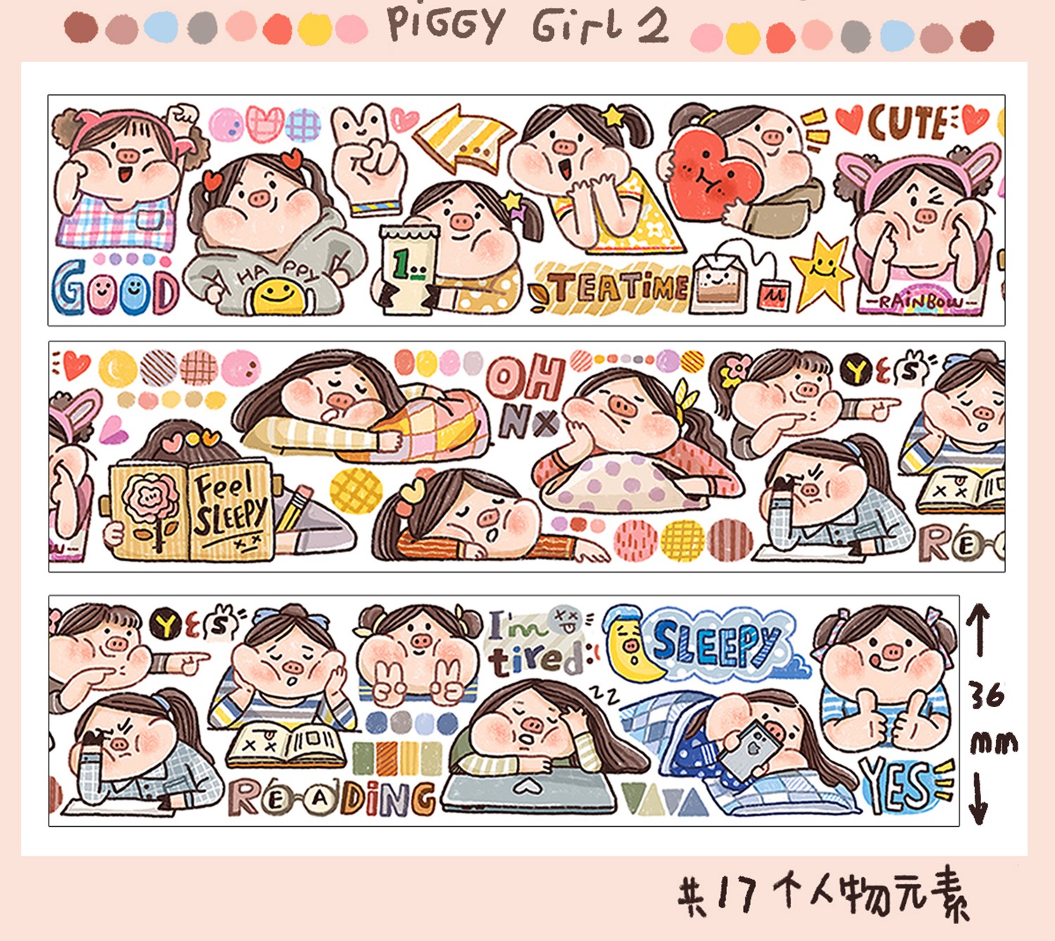↓3.PIGGY GIRL2(幅36mm*10M・38cm毎に柄が繰り返し・剥離紙タイプ)