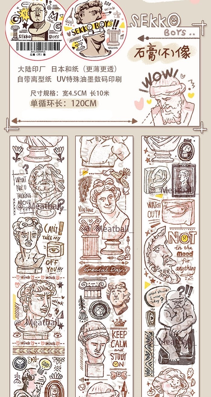 ↓4.石膏像(幅45mm*10M・120cm毎に柄が繰り返し・剥離紙タイプ)