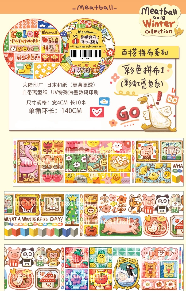 ↓4.彩色パッチワーク1 彩虹亮色系 (幅40mm・柄は140cm毎に繰り返し)