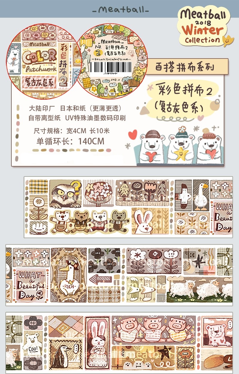 5.彩色パッチワーク2 復古灰色系 (幅40mm・柄は140cm毎に繰り返し)