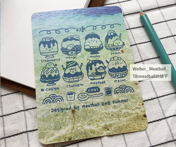 ↓3.砂浜かき氷 PPTサイズ(9.1cm*12.6cm 左が表・右が裏)