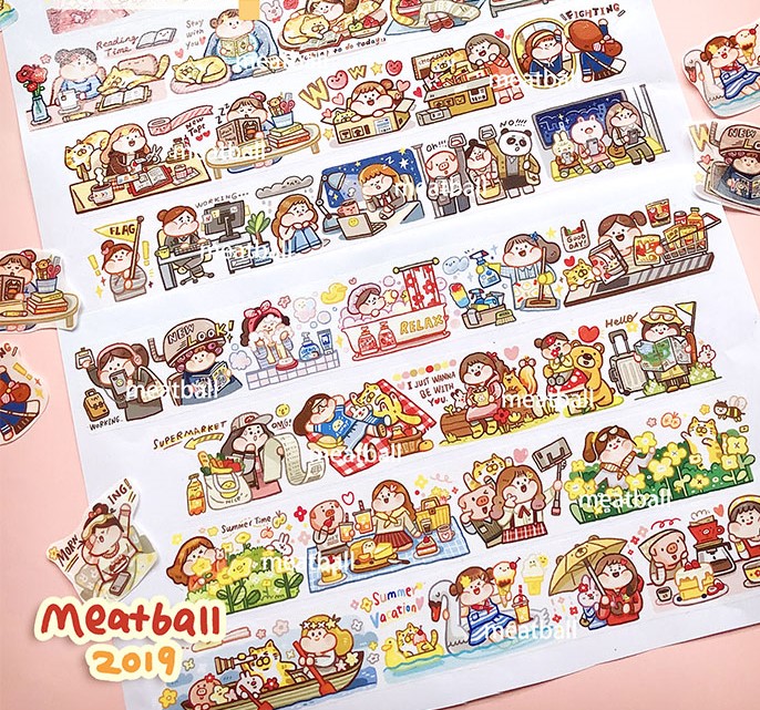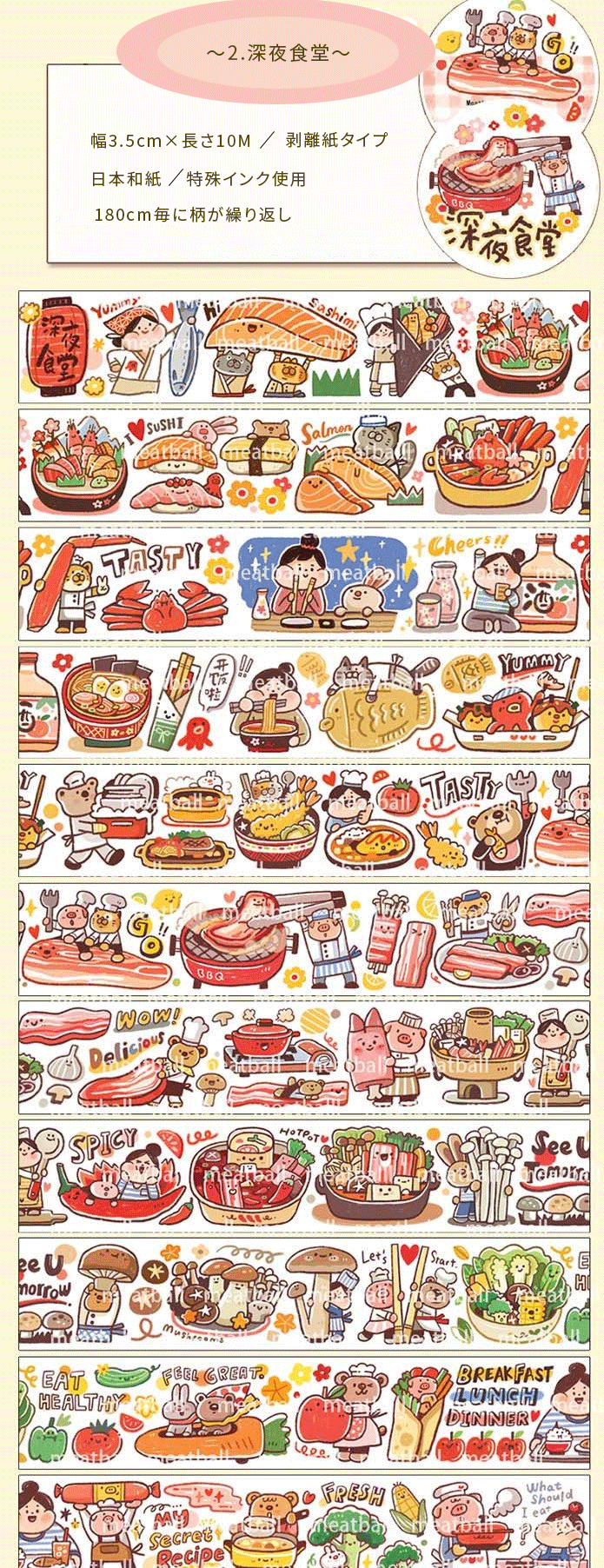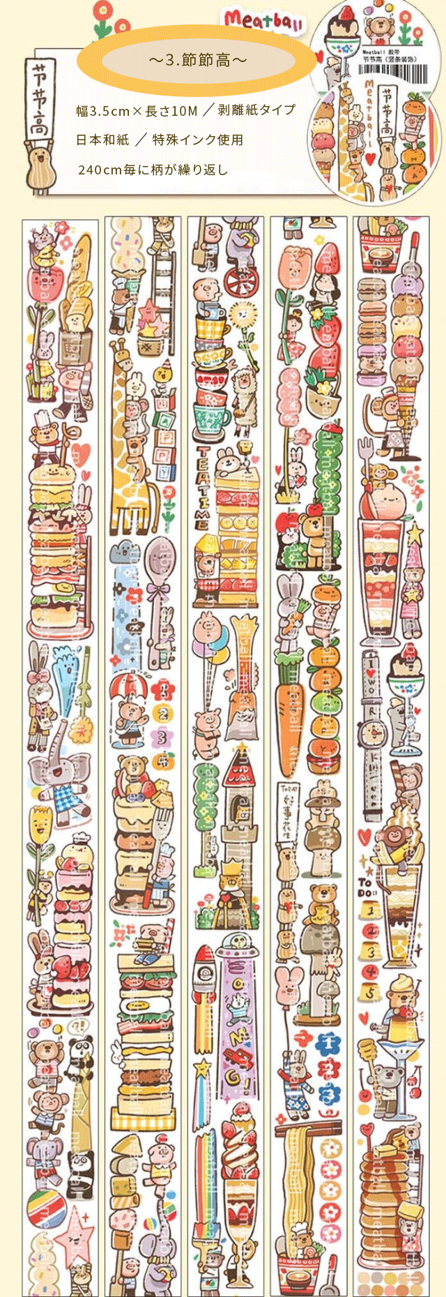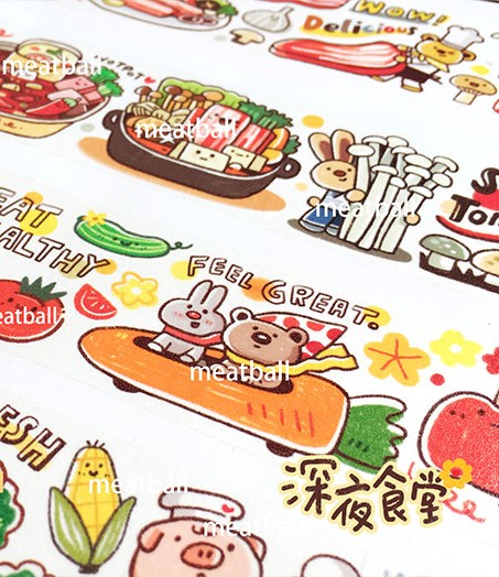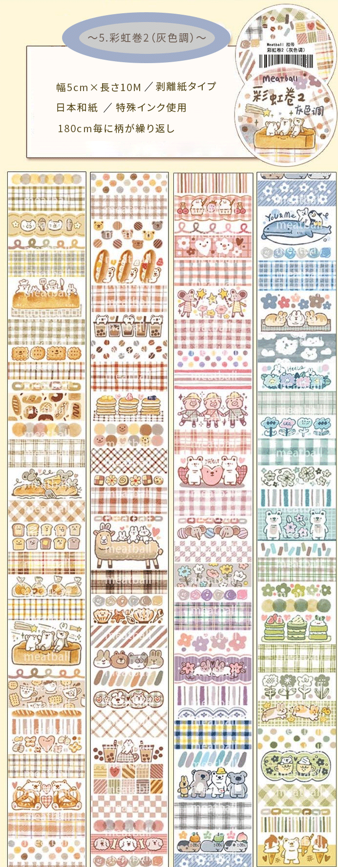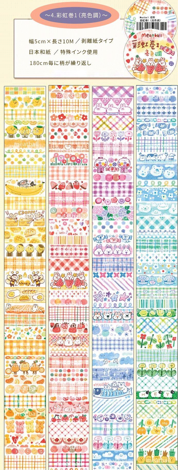 ※セットお買い上げの場合、meatballデザインの透明テープ・6.白白判判動物園(幅3.2cm*長さ5M)をお一つプレゼント!!単品販売も可能です。さらに宅急便もしくは宅急便コンパクト送料無料!!