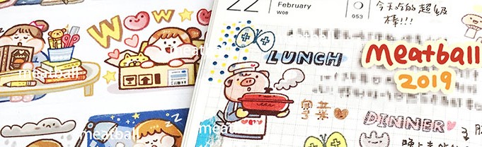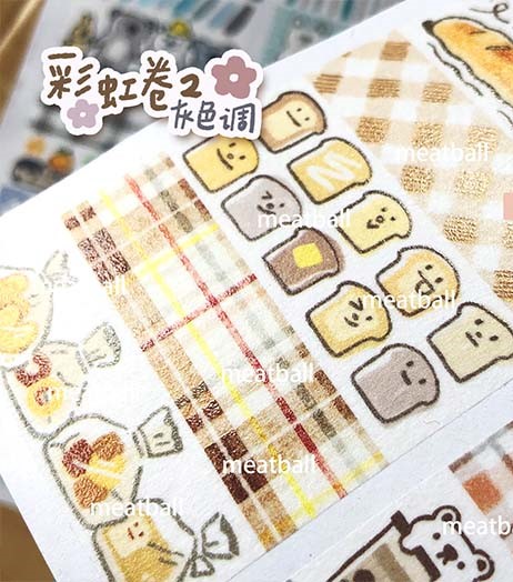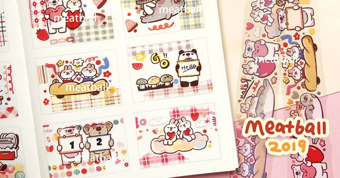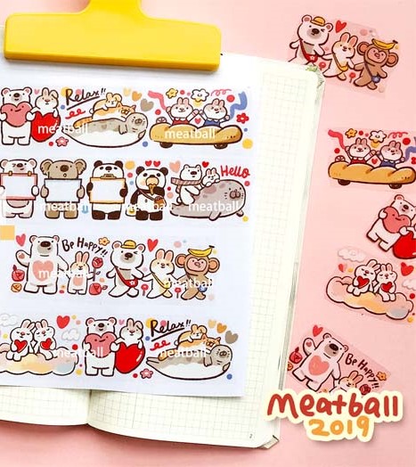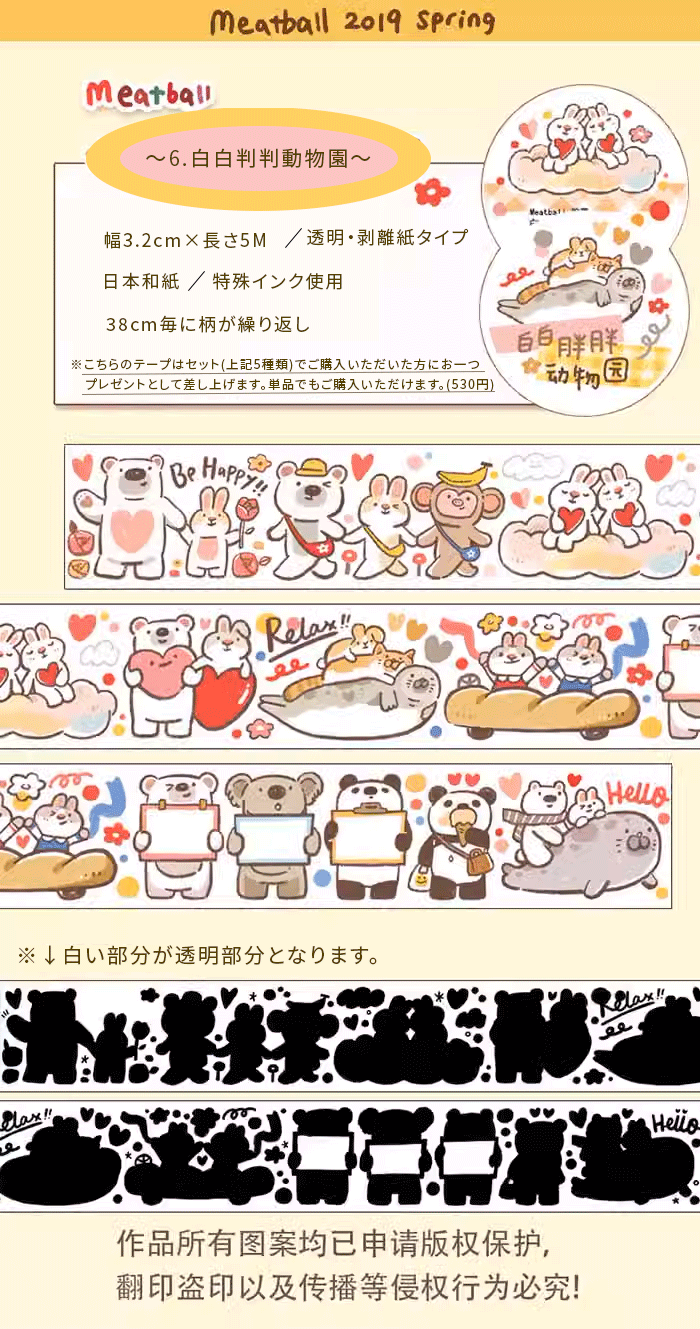 セットお買い上げの場合、meatballデザインの透明テープ 6.白白判判動物園(幅3.2cm*長さ5M)をお一つプレゼント!!