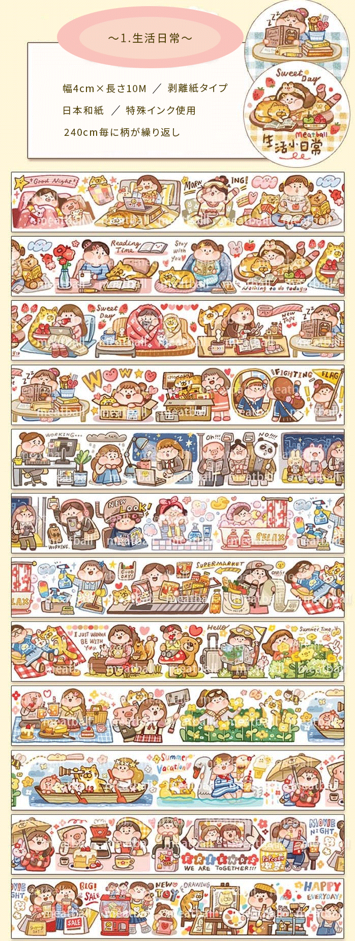 ↓1.生活日常 (幅4cm*長さ10M・柄は240cm毎に繰り返し)
