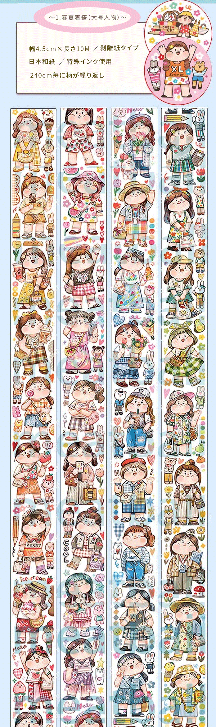 ↓1.春夏着搭 (幅4.5cm*長さ10M・柄は240cm毎に繰り返し)