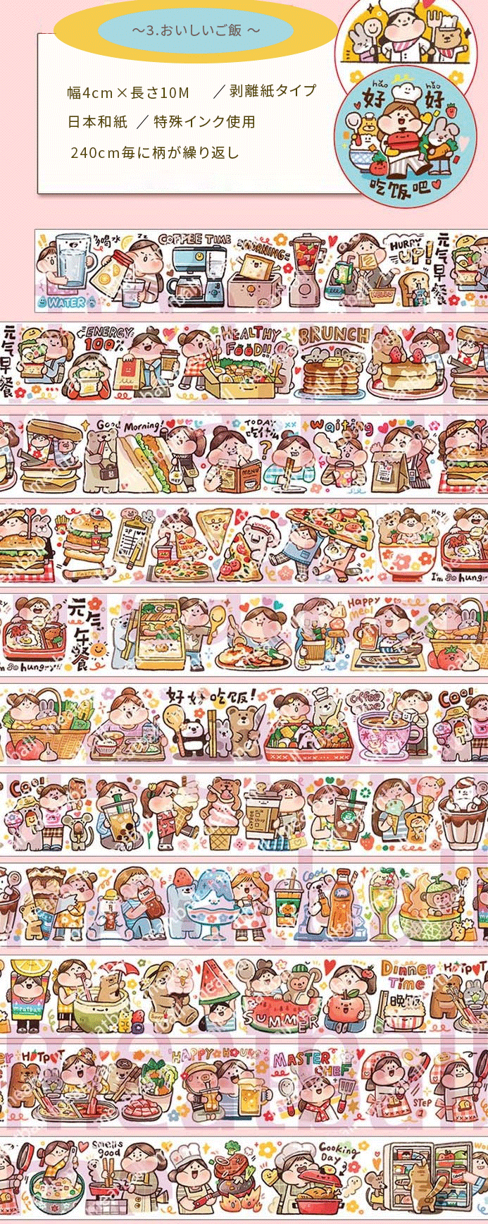 3.おいしいご飯 (幅4cm*長さ10M・柄は240cm毎に繰り返し)