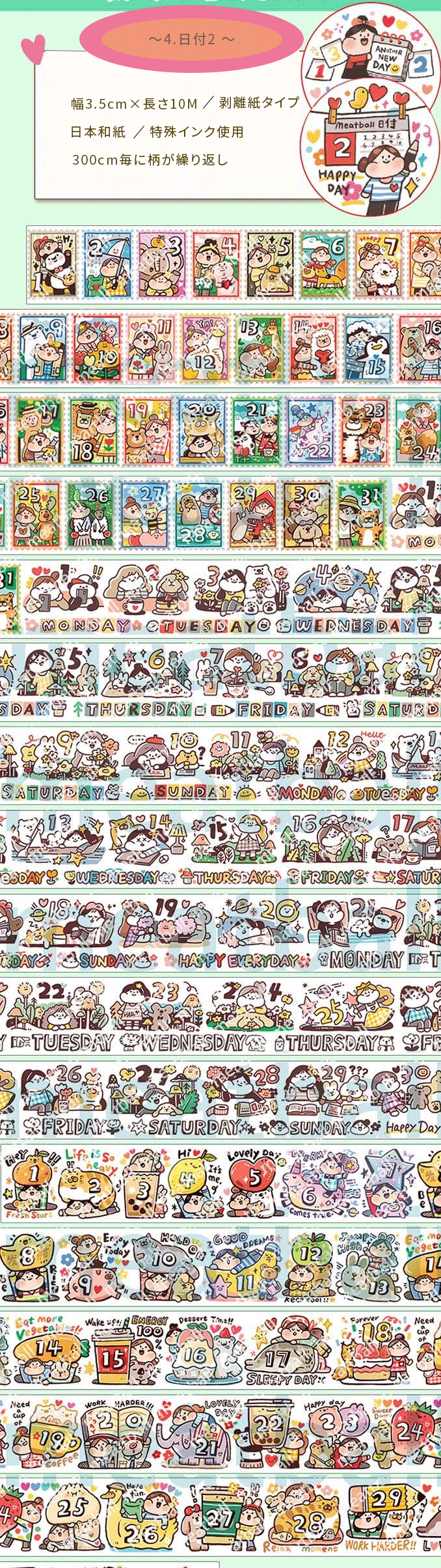 4.日付2 (幅3.5cm*長さ10M・柄は300cm毎に繰り返し)