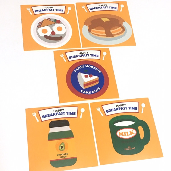 1.happy breakfast time 5種類*各1枚(6cm*6cm)