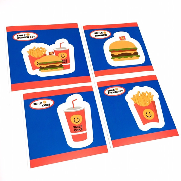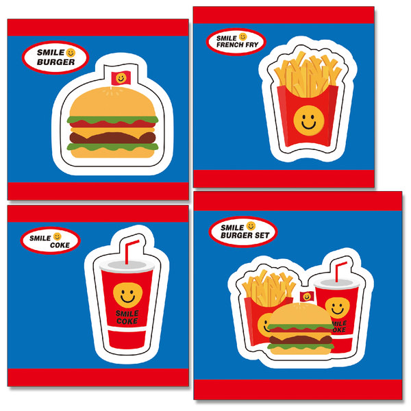 ↓3.ファーストフード 3種類*各1枚(6cm*6cm)・1種類*1枚(7cm*7cm)