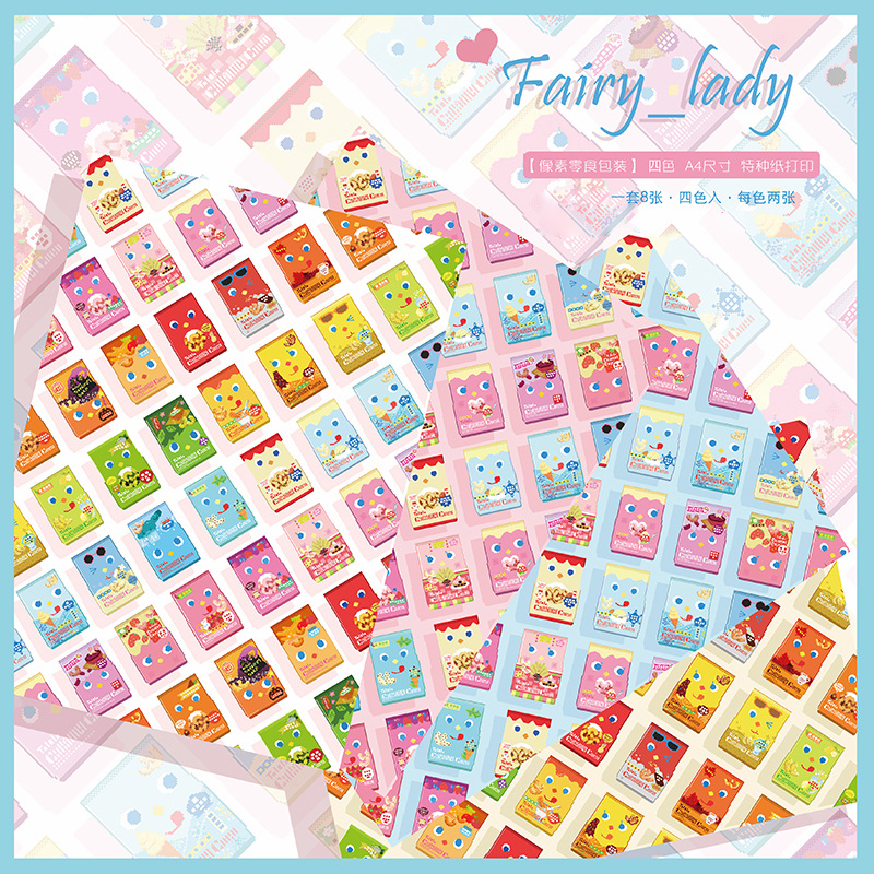 2.キュートラッピングペーパー(A4サイズ 210mm*297mm 4種*各2枚の計8枚)
