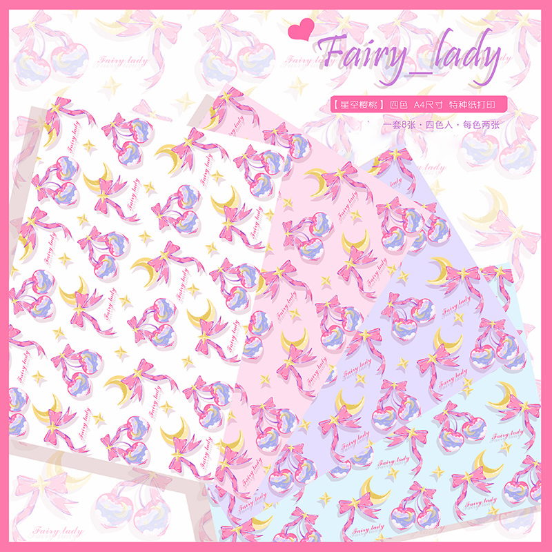 ↓2.星空サクランボ ラッピングペーパー A4サイズ(210*297mm) 4種*各2枚の計8枚
