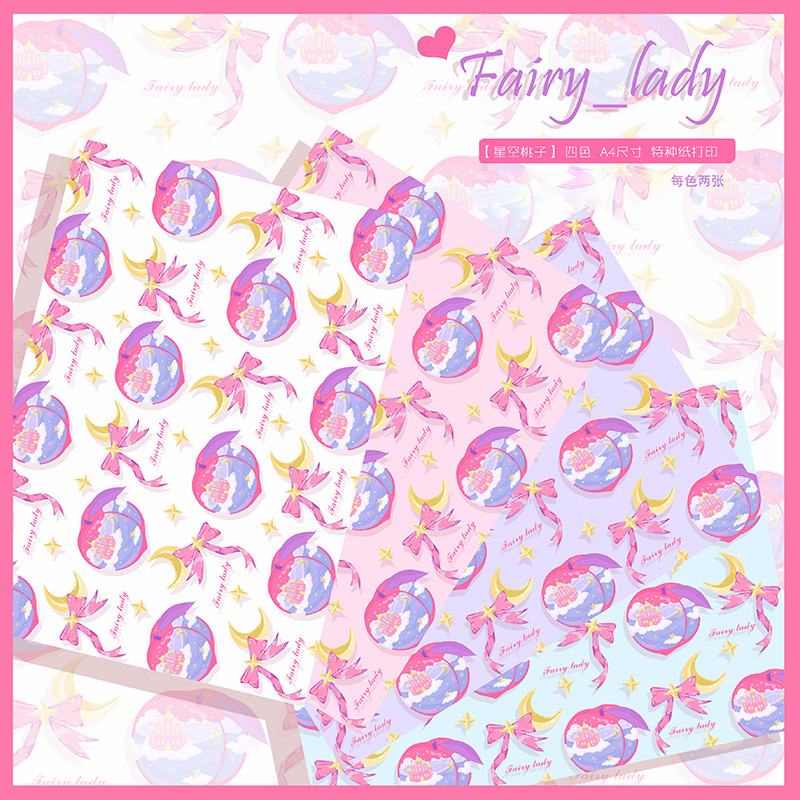 ↓3.星空ピーチ ラッピングペーパー A4サイズ(210*297mm) 4種*各2枚の計8枚