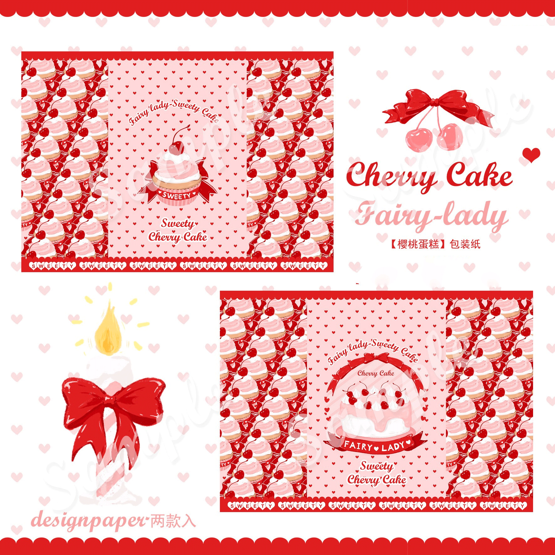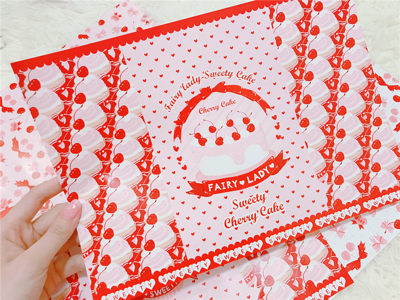 ↓5.Sweety cherry A4ラッピングペーパー(big cake) 2種*各4の計8枚