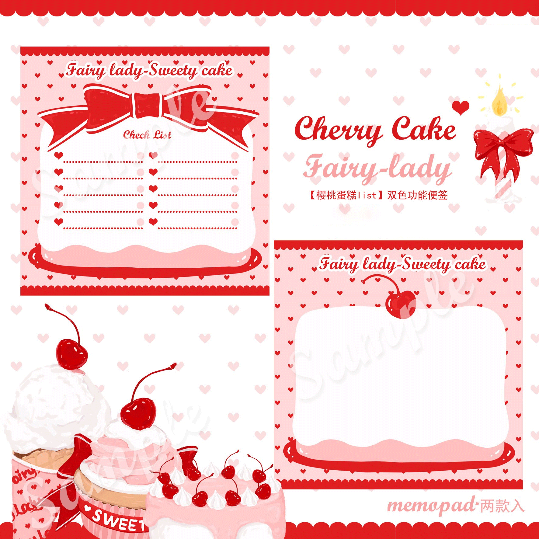 ↓8.Sweety cherry big cakeメモ(9cn*9cm) 2種*各30の計60ページ