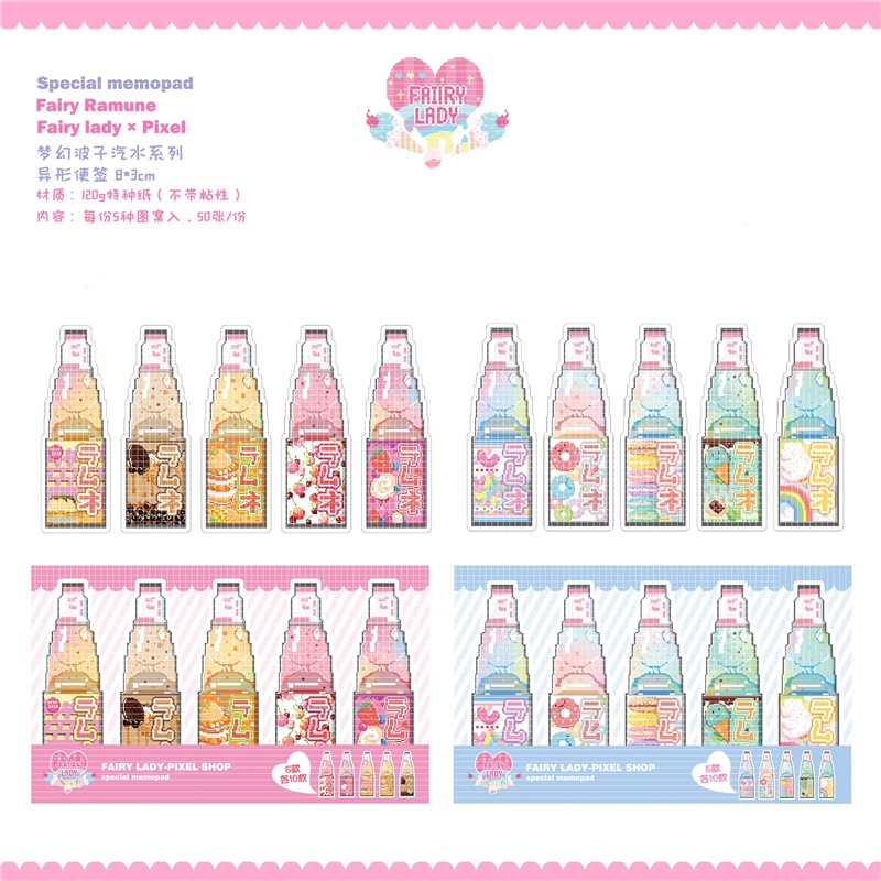 ↓6.ラムネ型抜きメモ pink(5種*各10の計50枚)←下記画像左