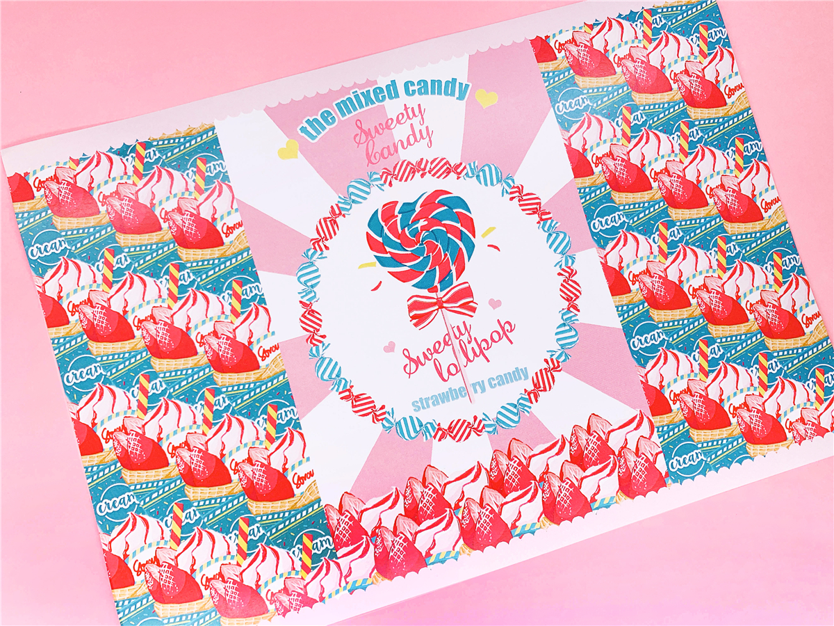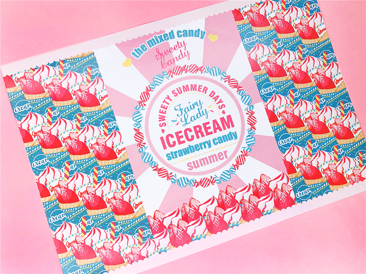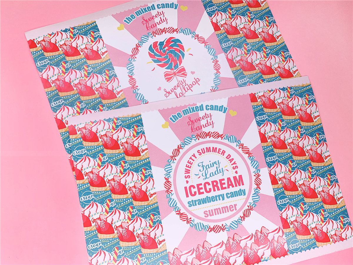 ↓7.Candy pop & ICE CREAM ラッピングペーパー A4サイズ(2種*各4で計8枚)