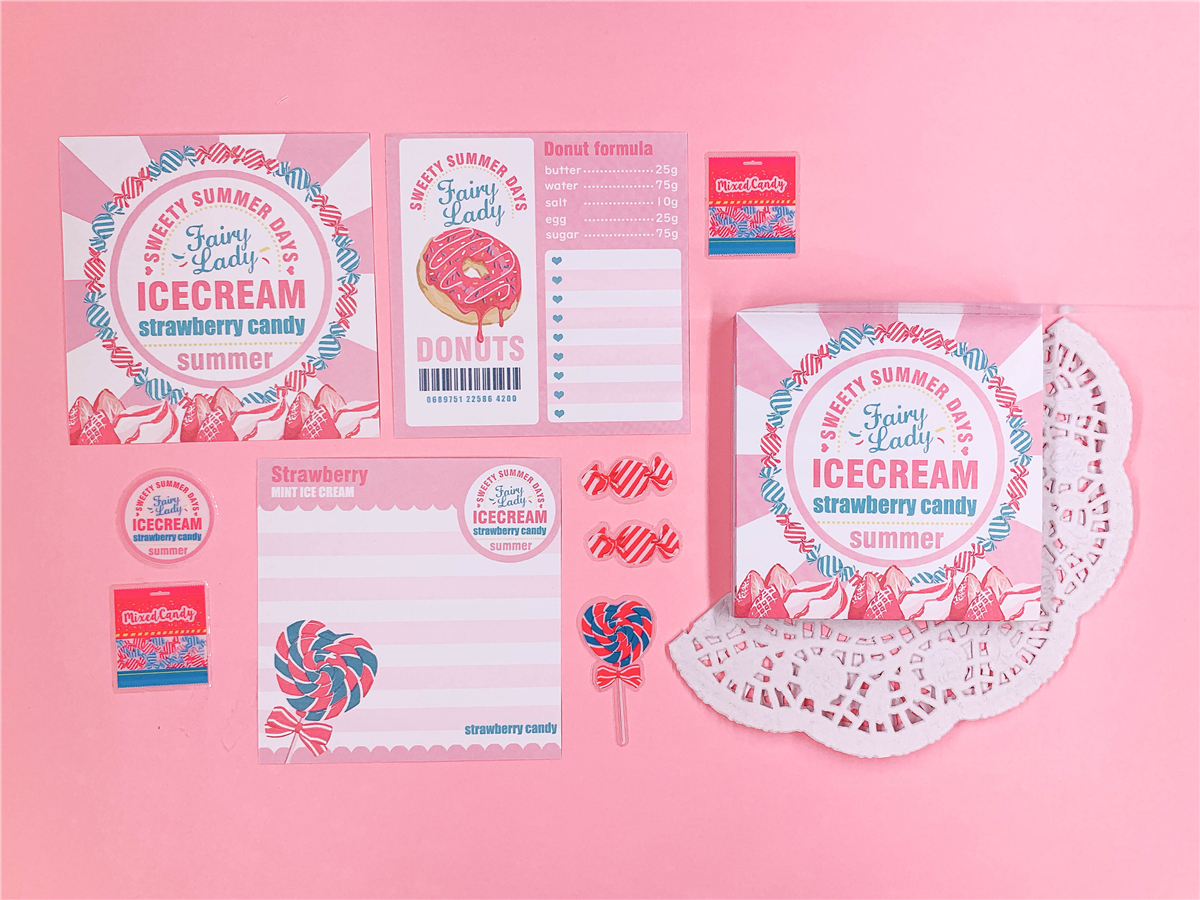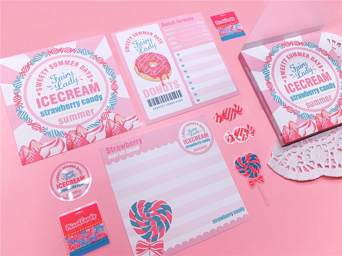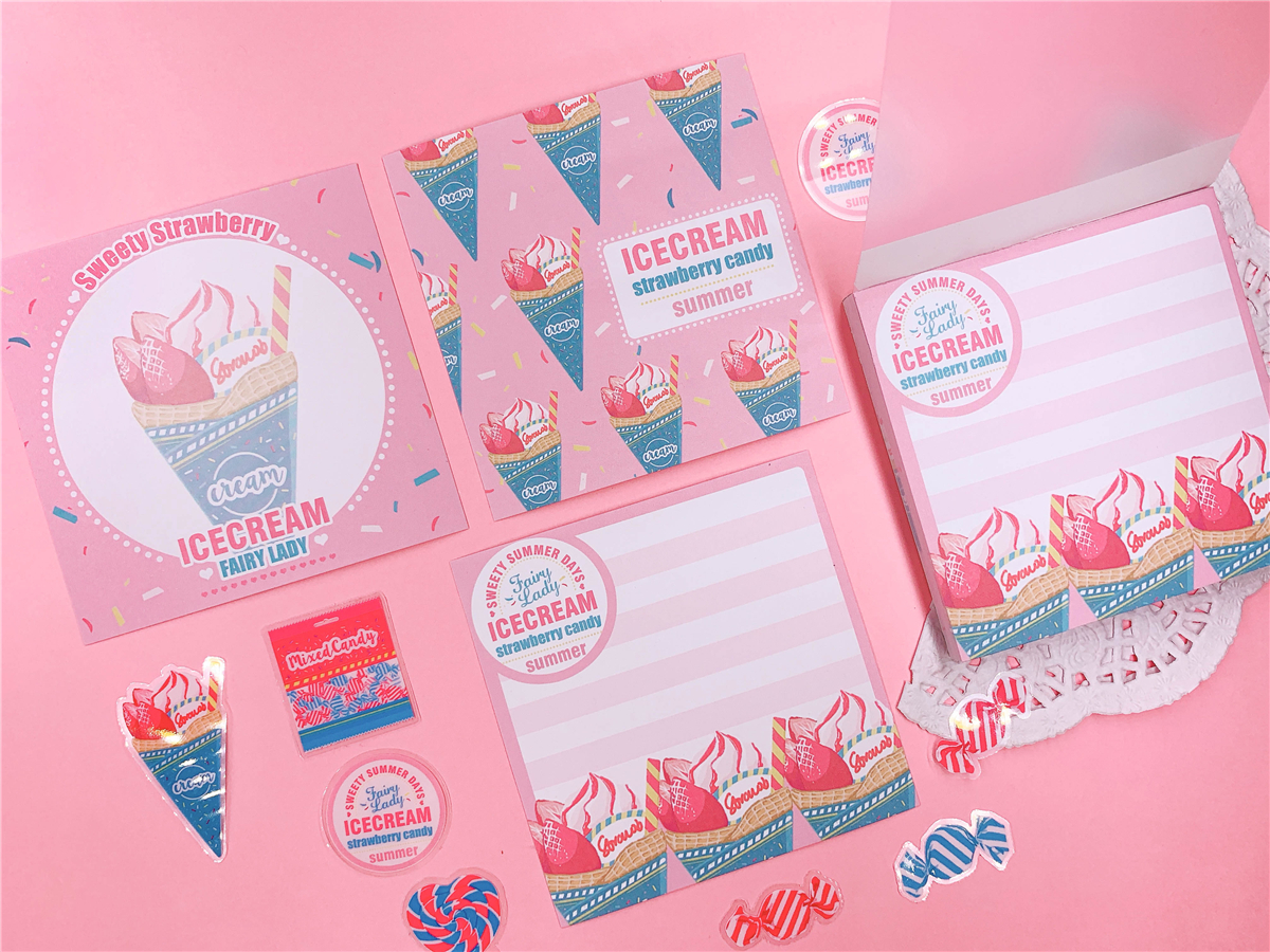 ↓7.Candy pop & ICE CREAM ラッピングペーパー A4サイズ(2種*各4で計8枚)