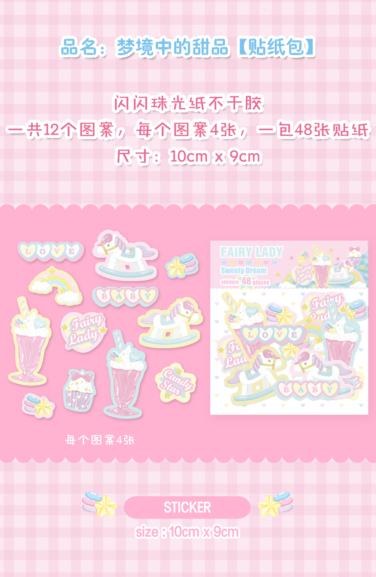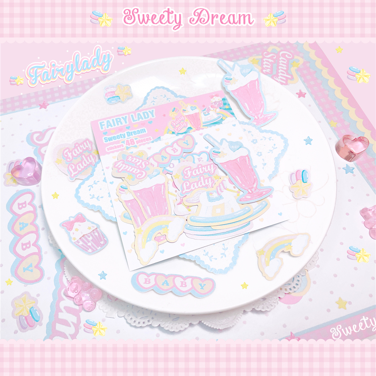 ↓1..Sweety Dream フレークシール(10cm*9cm/12柄*各4枚の計48枚)