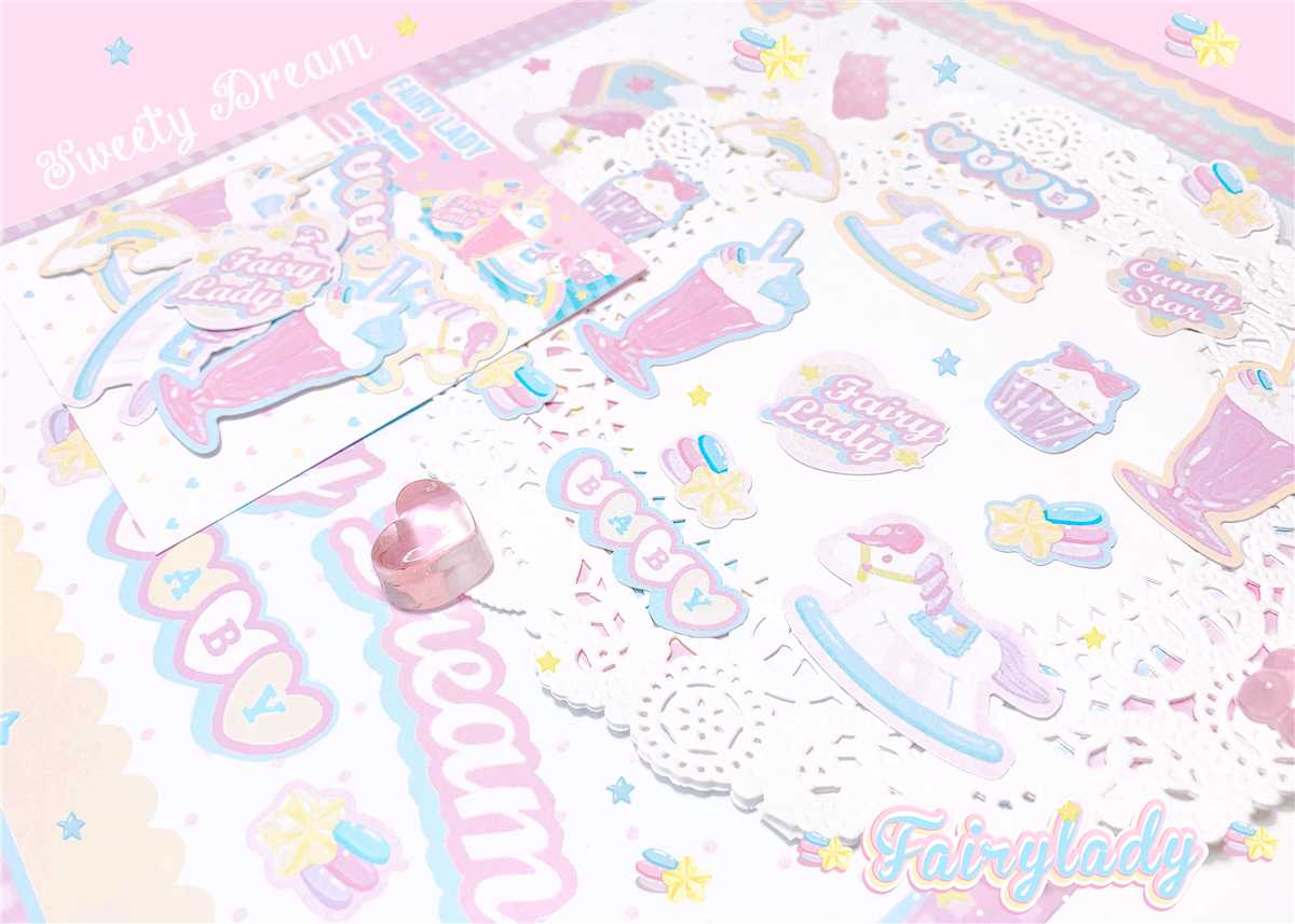 1.Sweety Dream フレークシール(10cm*9cm/12柄*各4枚の計48枚)