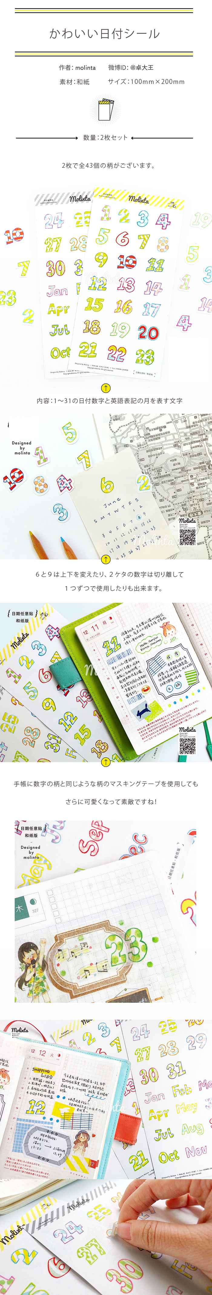 1.かわいい日付シール(100mm*200mm 2枚セット計43柄)