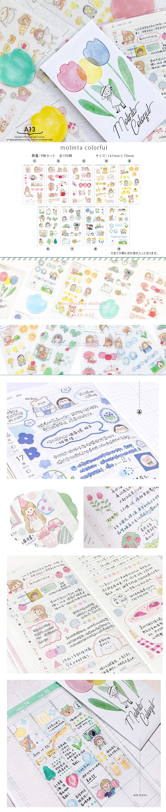 molinta colorful シール (149mm*79mm 9枚セット計106柄)