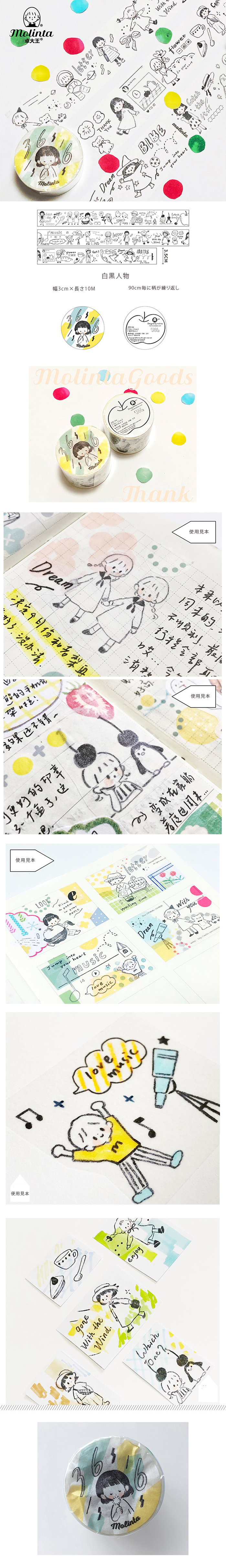 白黒人物 マスキングテープ (幅35mm*10M 90cm毎に柄が繰り返し)