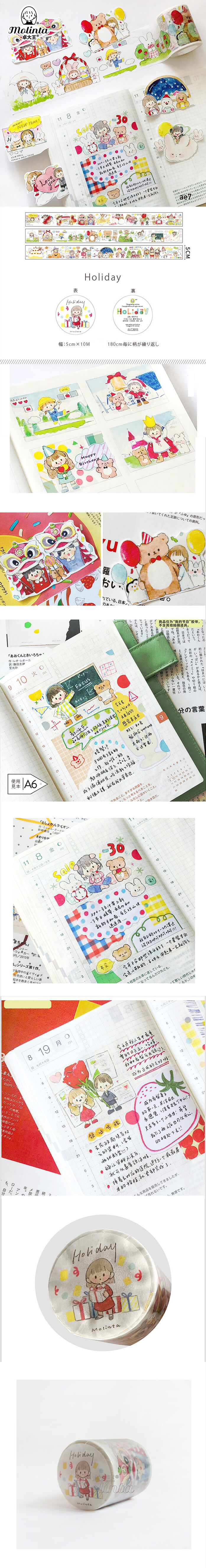 Holiday マスキングテープ (幅50mm*10M 180cm毎に柄が繰り返し)